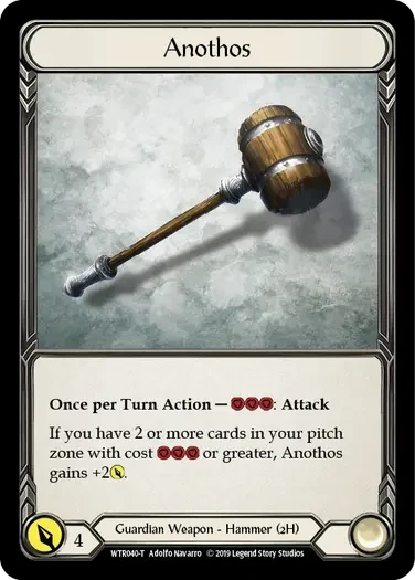 고유 무기 - 아노토스 턴에 한 번 액션 - : 공격 당신의 피치 구역에 비용 3 이상의 카드가 2장 이상 있다면, 이 카드는 +2을 얻습니다.