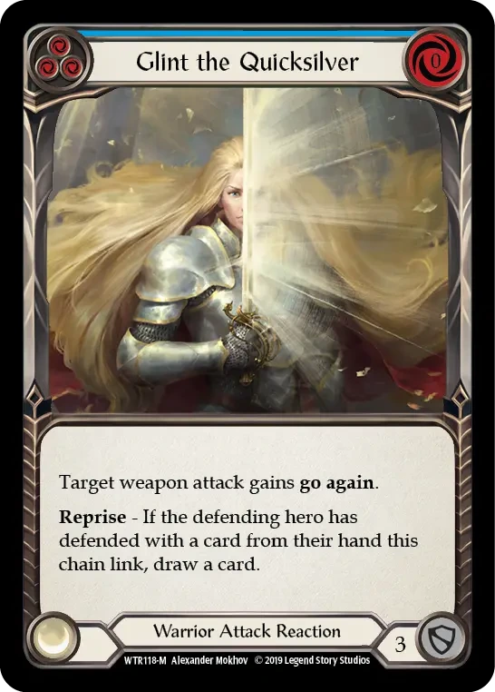 Glint the Quicksilver 대상 무기 공격은 이어가기를 얻습니다. 레프리제 -이 체인 링크에서 수비 영웅이 패에서 낸 카드로 방어했을 경우, 카드를 한 장 뽑습니다.