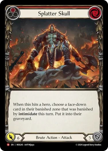 Splatter Skull 이 카드가 영웅에게 적중했을 때, 대상 영웅의 추방 구역에서 이번 턴에 위협을 통해 뒷면으로 추방된 카드를 한 장 선택합니다. 그 카드를 묘지에 넣습니다.